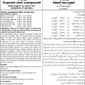 Composition: BelladonnaD12+100C, Bufo RanaD3+30C, Cuprum Met.D12+100C, MorphinD100+100C, Crocus SatD2+20C, HeloniasD3+30C, Cuprum ArsD20+200C Specific Indication: Probably genetic disorder, epilepsy may develop without any other apparent factors. Cerebral palsy, head injury, accident, tumors, stroke, trauma at birth, meningitis, encephalitis may be the major causes of epilepsy. General Indication: The brain is the highly complex structure composed of…