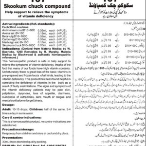 Composition: Skookum ChuckD10+100C, Carbo VegD10+100C, Anti CrudD6+60C, Medicago Sat +10C, Aven Sat +10C, Beta VulgD10+100C Specific Indication: Vitamin deficiency produces many symptoms. The most important symptoms are fatigue, pale skin, palpitation, dyspnoea, loss of appetite, diarrhoea, numbness of extremities. General Indication: Inspite of the fact that many of our foods have high vitamin contents. Unfortunately there…