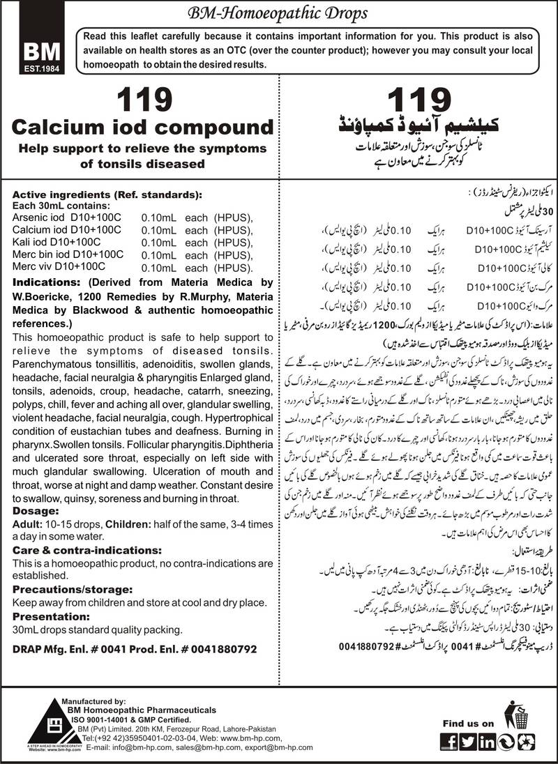 Help support to relieve the symptoms of diseased tonsils. Active ingredients (Ref. standard): Arsenic iod D10+100C 0.10mL each (HPUS), Calcium iod D10+100C 0.10mL each (HPUS), Kali iod D10+100C 0.10mL each (HPUS), Mere bin iod D10+100C 0.10mL each (HPUS), Merc viv D10+100C 0.10mL each (HPUS).