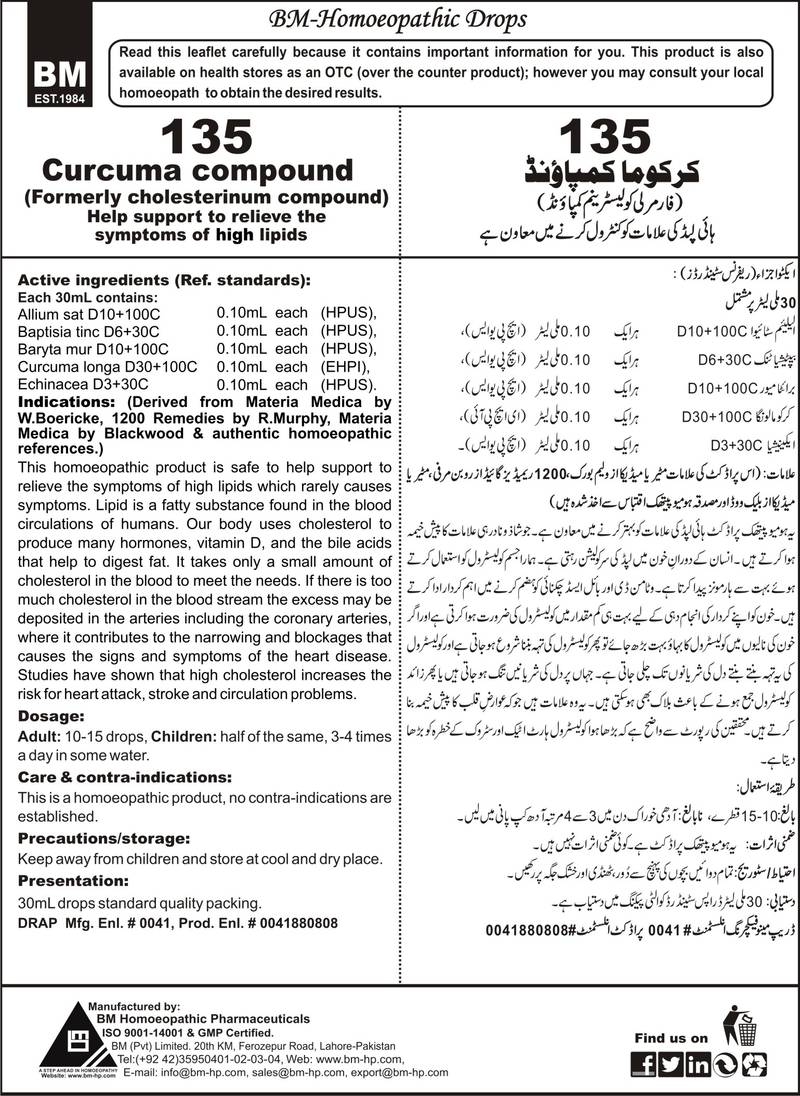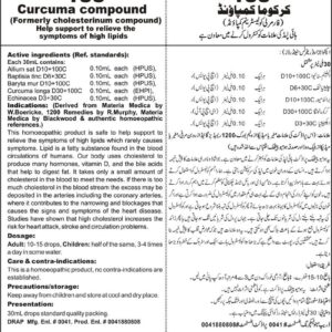 Help support to relieve the symptoms of high lipids Active ingredients (Ref. standard): Allium sat D10+100C 0.10mL each (HPUS), Baptisia tinc. D6+30C 0.10mL each (HPUS), Baryta mur D10+100C 0.10mL each (HPUS), Curcuma longa D30+100C 0.10mL each (EHPI), Echinacea D3+30C 0.10mL each (HPUS).