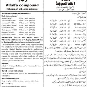 Help support and act as a vitatone Active ingredients (Ref. standard): Alfalfa D3+30C 0.10mL each (HPUS), Arnica mont D3+30C 0.10mL each (HPUS), Avena sat D3+30C 0.10mL each (EHPI), Cactus grand D3+30C 0.10mL each (HPUS), China off D3+30C 0.10mL each (HPUS), Crataegus oxy D3+30C 0.10mL each (HPUS), Digitalis D10+100C 0.03mL each (HPUS), Lycopodium D3+30C 0.10mL each…