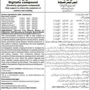 Help support to relieve the symptoms of oedema and swelling Active ingredients (Ref. standard): Adonis ver D2+20C 0.05mL each (HPUS), Apis mell D3+30C 0.10mL each (HPUS), Colchicum D6+60C 0.05mL each (HPUS), Digitalis D4+40C 0.05mL each (HPUS), Helleborus D4+40C 0.05mL each (HPUS), Stigmata may D2+20C 0.15mL each (HPUS), Strophanthus D3+30C 0.10mL each (HPUS).