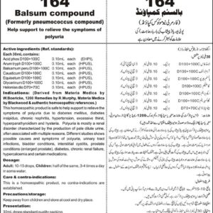 Help support to relieve the symptoms of polyuria Active ingredients (Ref. standard): Acid phos D100+100C 0.10mL each (EHPI), Arum tryph D100+100C 0.10mL each (HPUS), Balsamum peru D100+100C 0.10mL each (HPUS), Causticum D100+100C 0.10mL each (HPUS), Equisetum D100+100C 0.10mL each (HPUS), Glycerinum D100+100C 0.10mL each (HPUS), Helonias dio D70+70C 0.10mL each (HPUS).