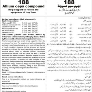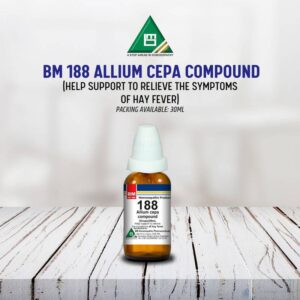 Help support to relieve the symptoms of hay fever Active ingredients (Ref. standard): Allium cepa D1+10C 0.10mL each (HPUS), Ambrosia artemisia D3+10C 0.10mL each (HPUS), Gelsemium D4+10C 0.10mL each (HPUS), Kali bichrome D10+100C 0.10mL each (HPUS), Nat mur D10+100C 0.10mL each (HPUS), Sabadilla C4+10C 0.10mL each (HPUS).