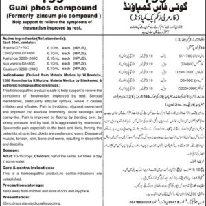 Help support to relieve the symptoms of rheumatism improved by rest Active ingredients (Ref. standard): Bryonia D7+70C 0.10mL each (HPUS), Colocynthis D7+60C 0.10mL each (HPUS), Kali phos D200+200C 0.10mL each (HPUS), Nux vomica D8+80C 0.10mL each (HPUS), Guaicum D200+200C 0.10mL each (HPUS).