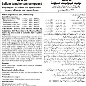 Help support to relieve the symptoms of tremors of hands and neurasthenia Active ingredients (Ref. standard): Agaricus mus D100+100C 0.10mL each (HPUS) Conium D100+100C 0.10mL each (HPUS), Gelsemium D100+100C 0.10mL each (HPUS), Laurocerasus D100+100C 0.10mL each (HPUS), Lolium temu D100+100C 0.10mL each (HPUS).