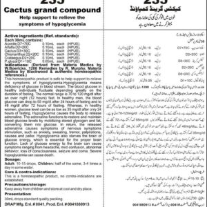 Help support to relieve the symptoms of hypoglycemia Active ingredients (Ref. standard): Aconite D7+70C 0.10mL each (HPUS), Alfalfa D2+20C 0.10mL each (HPUS), Cactus D3+30C 0.10mL each (HPUS), Chionanthus D2+20C 0.10mL each (HPUS), Crataegus D2+20C 0.10mL each (HPUS), P. glycol D1+10C 0.5mL each (HPUS).