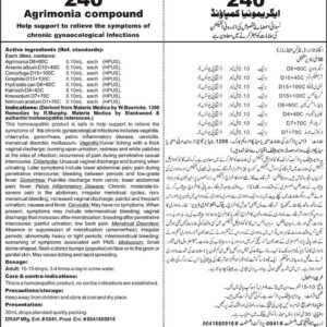 Help support to relieve the symptoms of chronic gynaecological infection Active ingredients (Ref. standard): Agrimonia D6+60C 0.10mL each (HPUS), Arsenic album D10+40C 0.10mL each (HPUS), Cimicifuga D15+100C 0.10mL each (HPUS), Graphite D15+100C 0.10mL each (HPUS), Hydrastis can D6+60C 0.10mL each (HPUS), Kali bich D4+40C 0.10mL each (HPUS), Kreosotum D7+70C 0.10mL each (HPUS), Nitricum acidum D7+70C…