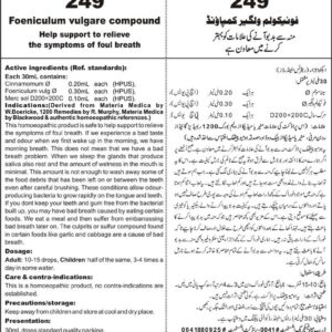 Help support to relieve the symptoms of foul breath Active ingredients (Ref. standard): Cinnamomum ? 0.20mL each (HPUS), Foeniculum vulg ? 0.30mL each (HPUS), Merc sol D200+200C 0.10mL each (HPUS).
