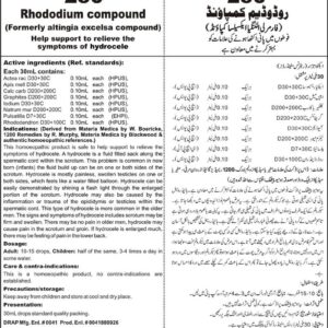 Help support to relieve the symptoms of hydrocele Active ingredients (Ref. standard): Actea rac D30+30C 0.10mL each (HPUS), Iodium D30+30C 0.10mL each (HPUS), Apis mell D30+30C 0.10mL each (HPUS), Calc carb D200+200C 0.10mL each (HPUS), Graphites D200+200C 0.10mL each (HPUS), Natrum mur D200+200C 0.10mL each (HPUS), Pulsatilla D7+30C 0.10mL each (EHPI), Rhododendron D30+100C 0.10mL each…