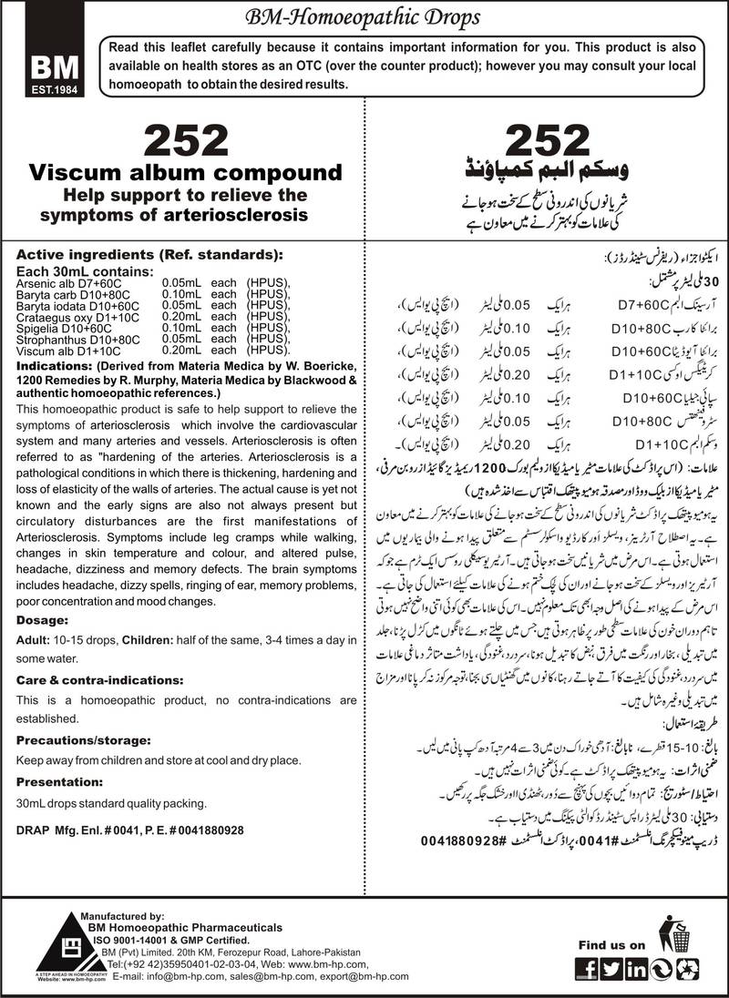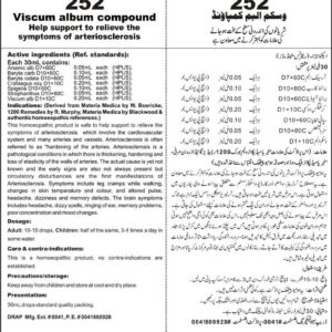 Help support to relieve the symptoms of arteriosclerosis Active ingredients (Ref. standard): Arsenic alb D7+60C 0.05mL each (HPUS), Baryta carb D10+80C 0.10mL each (HPUS), Baryta iodata D10+60C 0.05mL each (HPUS), Crataegus oxy D1+10C 0.20mL each (HPUS), Strophanthus D10+80C 0.05mL each (HPUS), Spigelia D10+60C 0.10mL each (HPUS), Viscum alb D1+10C 0.20mL each (HPUS).