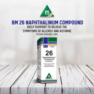 DRAP Product.Enl No. 0041830223 Composition: Arsenic AlbD7, Atropin SulphD6, Blatta oriD3, GrindeliaD3, IpecacD6, NaphthalinumD7, Spongia TostaD4. General Indication: May help in the symptoms of allergic asthmatic bronchitis, chest tightness, wheezing, bluish skin, exhaustion, grunting respiration and restlessness