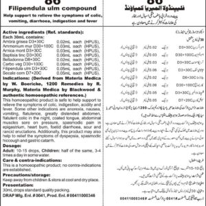DRAP Product.Enl No. 00411000346 Help support to relieve the symptoms of colic, nausea, vomiting, diarrhoea, indigestion and fever. Active ingredients (Ref. standard): Ambra grisea D3+30C 0.02mL each (HPUS), Ammonium mur D30+100C 0.03mL each (HPUS), Arnica mont D3+30C 0.03mL each (HPUS), Baptisia tinc D3+30C 0.06mL each (HPUS), Belladonna D8+30C 0.02mL each (HPUS), Carbo veg D30+100C 0.06mL…