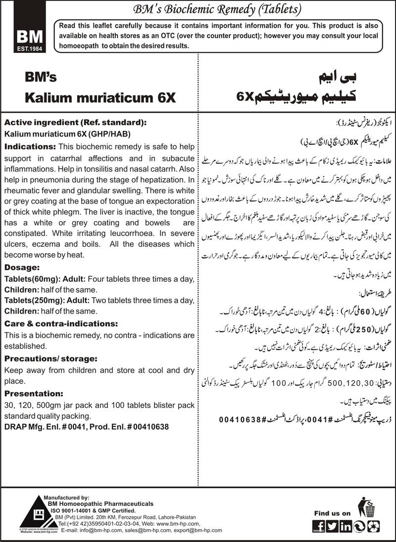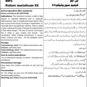 Active ingredient (Ref. standard): Kalium muriaticum 6X 0.6mg (GHP/HAB).