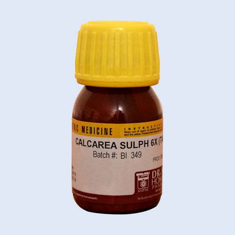 Sulphate of calcium is found in the liver where it helps in the removal of waste products from the blood stream and it has a cleansing and purifying influence throughout the body. It has an anti-inflammatory effect and supports the growth of cells. It is indicated in abscesses, pimples, pustules, bronchitis, wounds that won?t heal and purulent processes. It is recommended in the symptoms, specifically those that are produced with yellow pus.