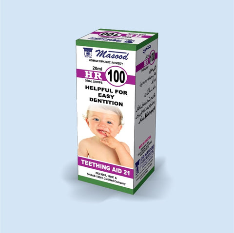 Masood’s HR-100 TEETHING AID is effective for colic in children . Best Homoeopathic preparation for Dentition problems. Relieves toothache by reducing gums swelling. Useful for colic in children. Presentation: Bottle of 20ml.