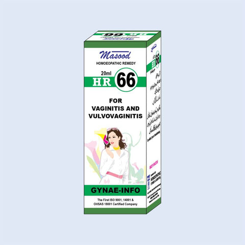 Masood?s HR 66 cures all the female genital disorders functional or textural. It deals with vaginitis, vulvogaginitis, hormonal disorders, vulvar pruritus, vulvitis, vaginsmus, matritis, and displacement of uterus.