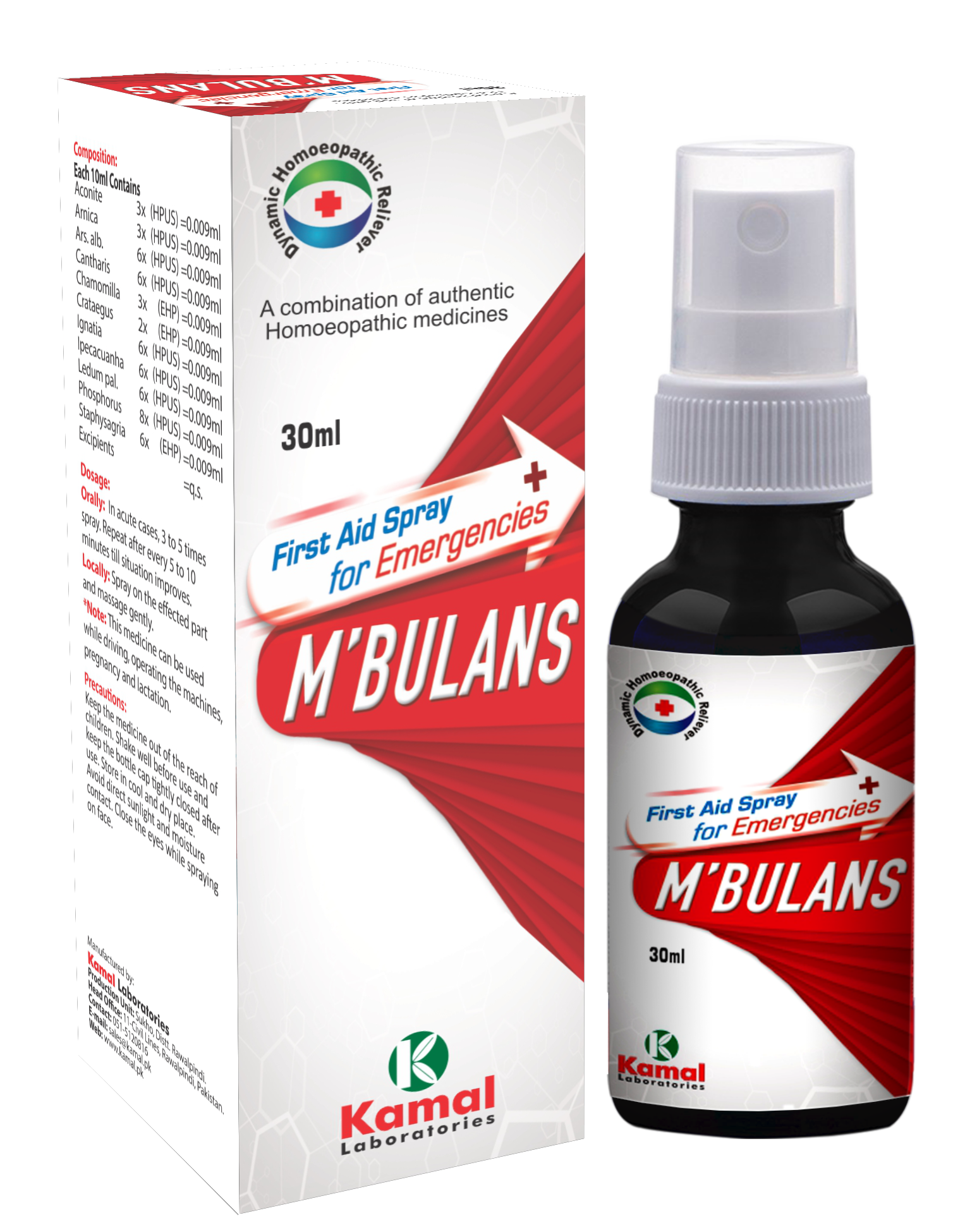 Indications / Symtoms : For relief in pains (trauma, head & chest) fainting, vomiting, diarrhoea, fever, sunstroke and rashes on skin. Also helpful for difficulty in breathing & passing urine, allergies as well as for normalizing blood pressure. Composition : Aconite 3x Arnica 3x Ars.alb 6x Cantharis 6x Chamomilla 3x Crataegus 2x Ignatia 6x Ipecacuanha 6x Ledum pal 3x Phosphorus 8x Staphysagria 6x Description : The Dynamic Reliever Aconite : Anxiety , Fainting, Fear, Restlessness, numbness. Arnica : Trauma, Shock, Fainting, blows, angina pectoris, chest pain. Ars. alb: Restlessness and fear, angina, palpitation, difficulty in breathing, vomiting, diarrhea Food poisoning. Cantharis: Burning sensation due to sunburn,burns and scalds and electric shocks, syncope, weak pulse, retention of urine. Chamomilla : Child immediately Dosage : Orally: In acute cases, 3 to 5 spray repeat after 5 minute till situation improves.