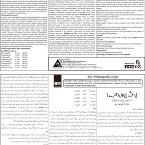 Composition: Gravel laurel(TM), Lytta Vesicatoria(TM), Pipperdge bush(TM), Seven bark(TM), Smilax ornata(TM), Stigmata(TM), Terebinthinae(TM), Thlaspi BP(TM) General Indication: Kidney stone, Neuralgic pains, Nephritis, Constant desire to urinate, Cutting before, during and after urine, Urine is passed drop by drop, Inflammation in the kidney, Sensation as if some urine remained, Turbid urine with thick mucous, Irritable condition…